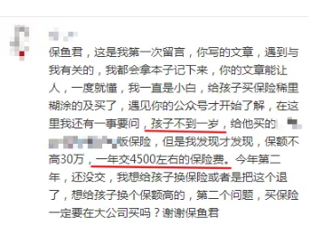 因?yàn)?,這是給一個(gè)小孩子買的保險(xiǎn)!小孩子的保費(fèi)預(yù)算已經(jīng)用了4500元!