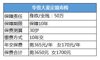 以定期壽險(xiǎn)“華貴大麥定期壽險(xiǎn)”為例: