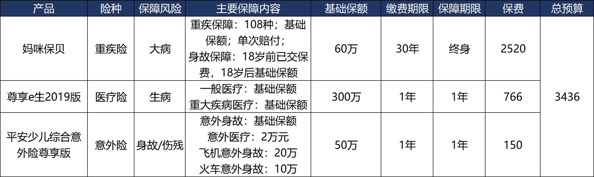 小魚根據預算情況的不同,為寶寶定制了保險套餐供寶媽參考