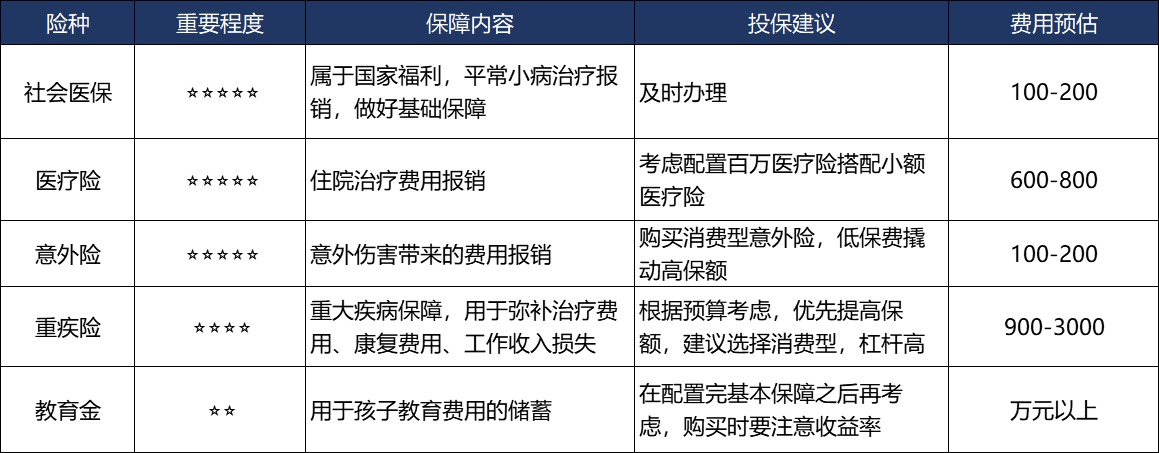 寶寶的保險配置套餐