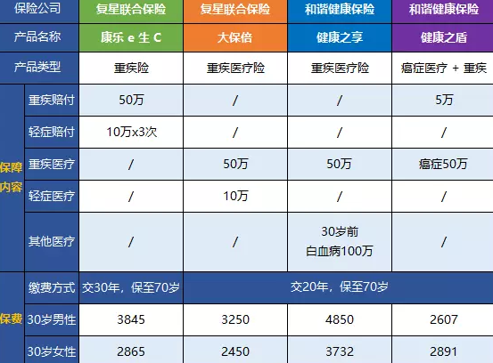復(fù)星聯(lián)合健康大保倍、健康之享,這兩個產(chǎn)品非常相似,屬于名副其實的長期醫(yī)療保險,可以保證70或80歲,甚至終身。