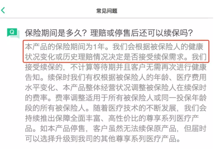 也就是說(shuō),隨著父母年齡的增長(zhǎng),身體出現(xiàn)了一個(gè)小問(wèn)題。當(dāng)最需要保險(xiǎn)時(shí),尊享e生爸媽版可能不續(xù)保。簡(jiǎn)而言之,醫(yī)療費(fèi)用的報(bào)銷(xiāo)可能只持續(xù)一年。僅此一點(diǎn),我不建議使用此尊享e生爸媽版。